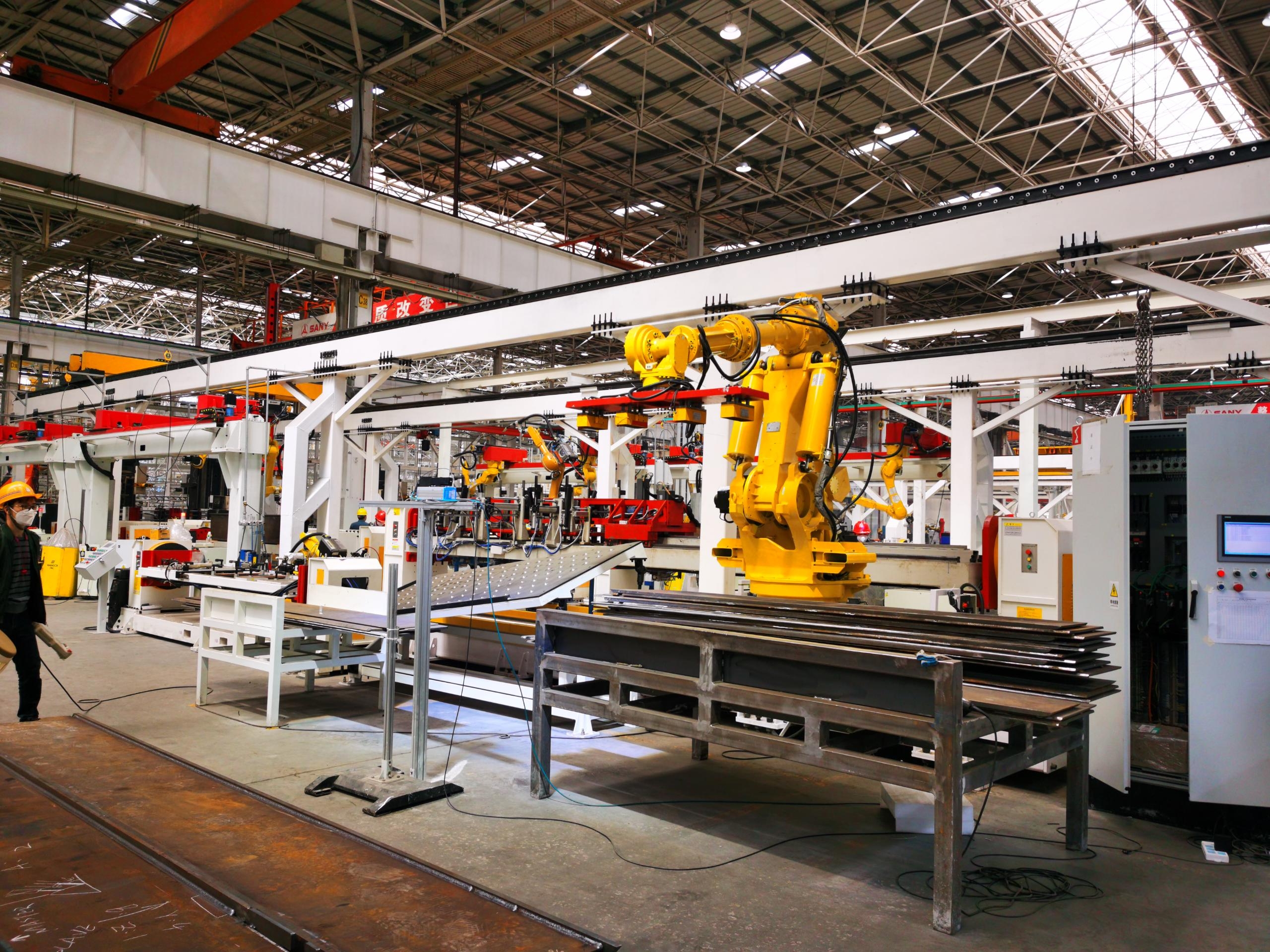 業(yè)內第一臺套大型泵送車輛前支腿全自動組對生,機器人搬運解決人工搬運工件較重問題,機器人多層多道焊接可節(jié)約人工,防止錯焊,漏焊,提升焊接熔深,保證焊接質量;同時產線在不停止狀態(tài)下滿足多種車型柔性切換